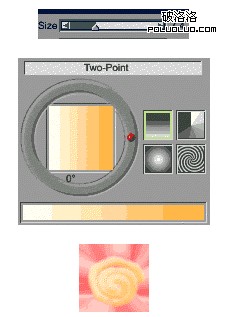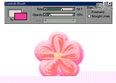 5、選一個新顏色來改變傾斜度顏色,縮小筆刷尺寸,畫出花的中心。