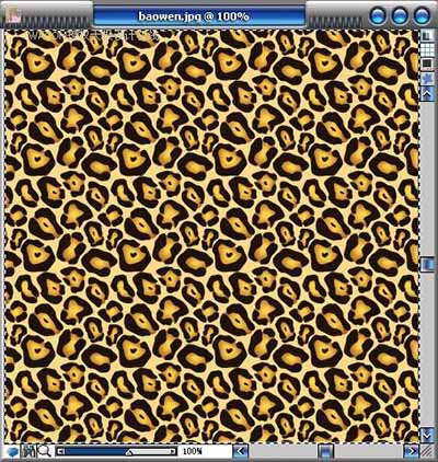 1.在Illustrator CS中新建一個(gè)RGB模式的空白文件,使用矩形工具按住Shift鍵畫一個(gè)正方形。填充Jaguar的豹紋圖案,并把正方形的輪廓色屬性改為無色。