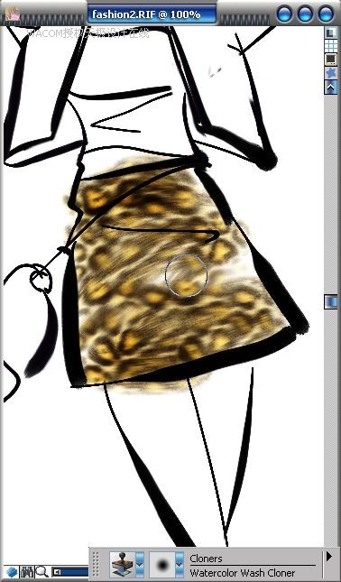 7.新建一個(gè)水彩圖層,使用Cloners/Watercolor Wash Cloner的畫筆,當(dāng)前Patterns面板的圖案設(shè)置為自定義的Jaguar圖案,進(jìn)行克隆繪畫。