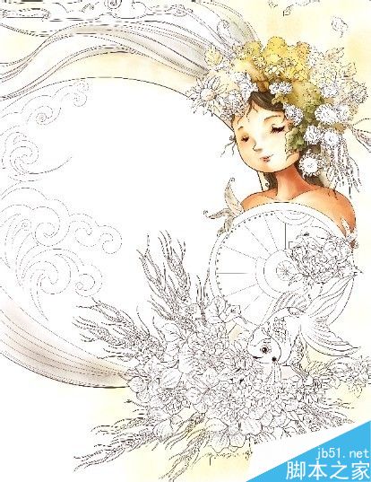 3、頭部花卉雛形慢慢形成,注意畫面的重點細節的刻畫