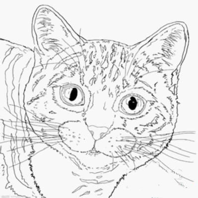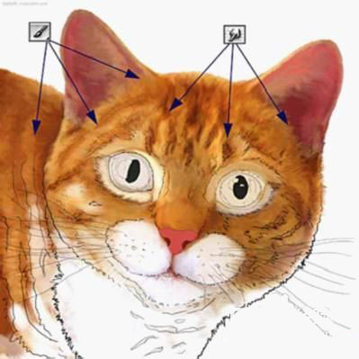 4、開始精練貓的線條,用smudge(污跡)工具拉伸毛發(fā)的線條,用橡皮擦去偏離的線條,多余的型。