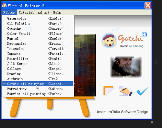 6、回到virtual painte主面板,再一次點擊藍色對號,然后按Ctrl加f鍵,哥特式油畫就出來了