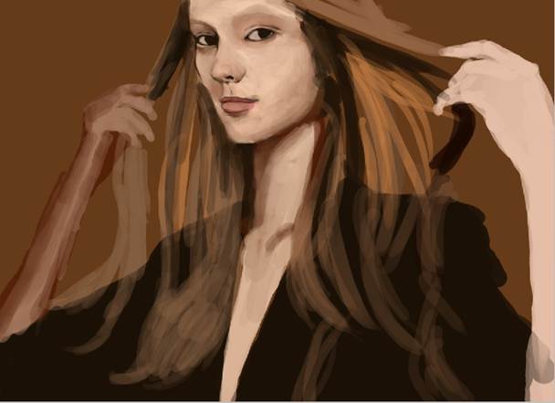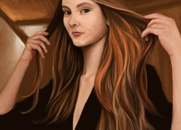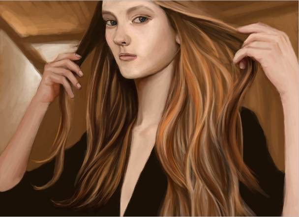 17.我們接著給人物畫上頭發(fā),注意,讓一些頭發(fā)"跳"出來會增加畫面的鮮活感,也給女性角色帶來一些生活氣息。