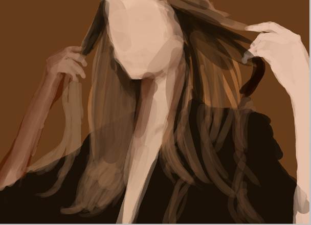 4. 注意我們在開始打稿的時候不要一下就陷入到形體的細節(jié)去,這里我采用的方法是先用幾個大色塊對人物的形體做個大的概括。