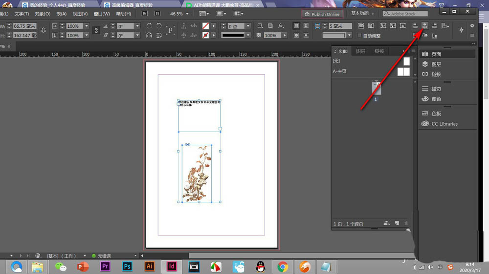 4、這樣文字和圖片都居中對齊了,不過這是文本框?qū)R,如果文本框不適合就需要適合文本框。