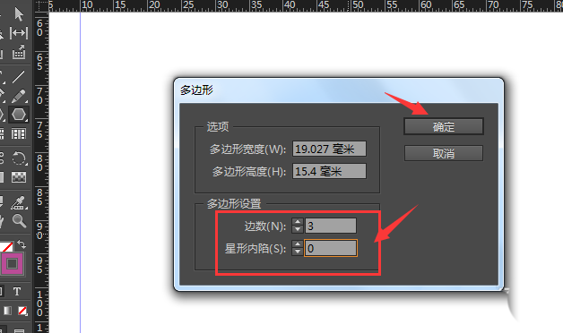 2、選擇工具后,在空白處點擊下,調出屬性設置,在這里可以輸入多邊形寬高以及邊數設置