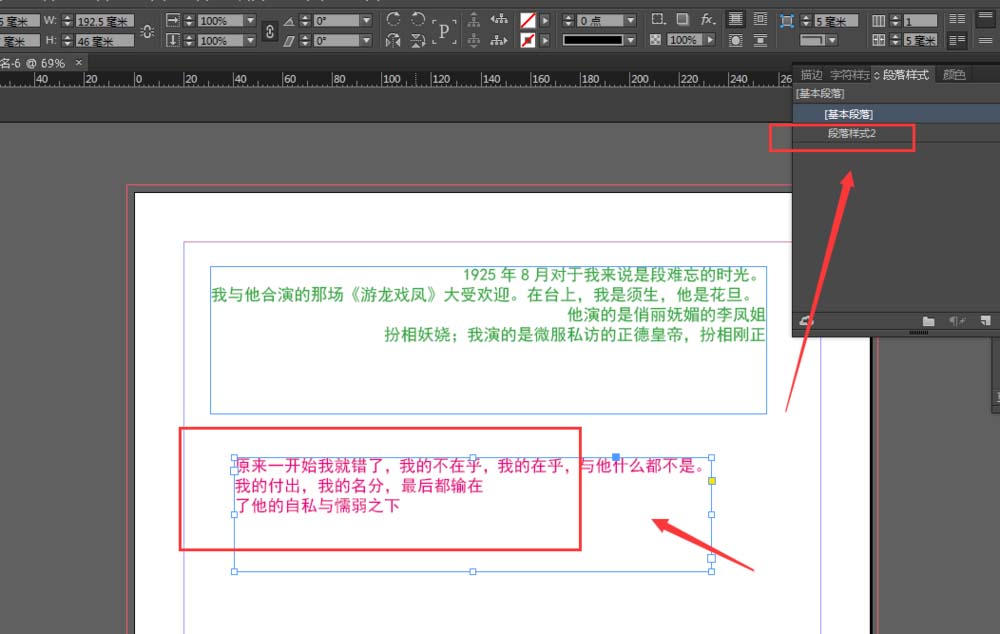 7、這樣新建的文本就會被添加上之前設置的段落樣式了。