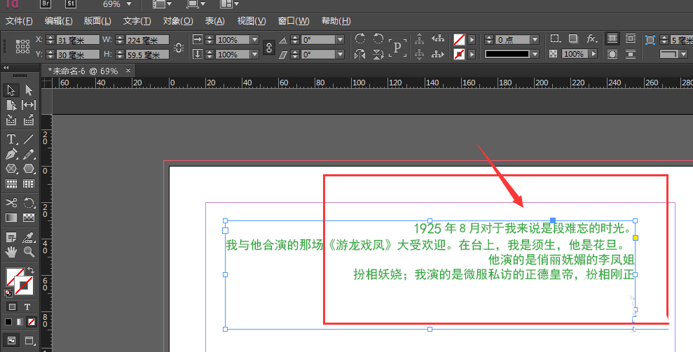 6、再重新建立一個普通的文本,如圖,選中文本,然后再點擊屬性中的段落樣式