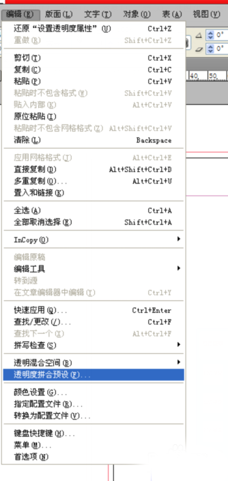 4、保持兩個(gè)矩形被選中的狀態(tài),在編輯下拉中找到【透度拼合預(yù)設(shè)】(如圖)