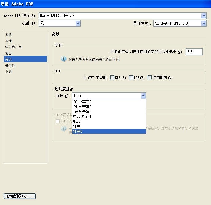 6、 導(dǎo)出PDF時(shí),在【高級(jí)】中選擇(如圖)即可