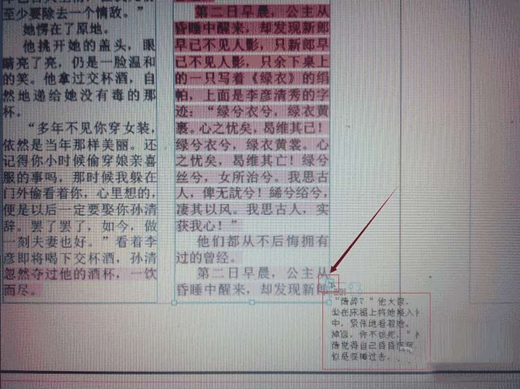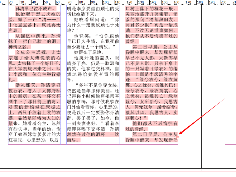 2、例如,我將一段文字復制進入剩下的區域里面,肯定是沒剛好放下的了。因此在如圖所示的文字也出現了一個小的紅色+顯示還有文字沒放進去