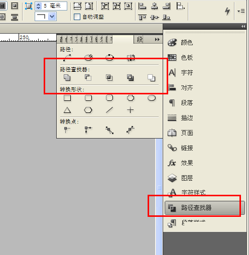3、打開并找到路徑查找器,路徑查找器里面有很多功能,這里就先簡單介紹一下最基本的幾個