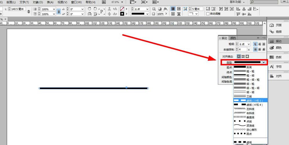 8、然后在如下圖所示位置,添加虛線間隙的顏色,顏色是色板已經有的顏色,如需要別的顏色,先去色板中增加顏色再來更改