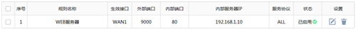 注意:由于寬帶運營商可能會屏蔽80、8080等常用端口,因此建議外部端口不使用這些端口,外部端口可以設置為9000以上的端口。