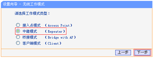 選擇 中繼模式(Repeater),點擊 下一步。