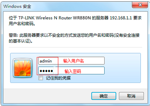 在對(duì)應(yīng)的位置分別輸入用戶名和密碼,點(diǎn)擊 確定。默認(rèn)的用戶名和密碼均為 admin。