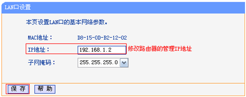 登錄路由器的管理界面,點(diǎn)擊 網(wǎng)絡(luò)參數(shù) >> LAN口設(shè)置,修改IP地址(如主路由器的IP地址是192.168.1.1,則副路由器修改為192.168.1.2),保存并重啟路由器。