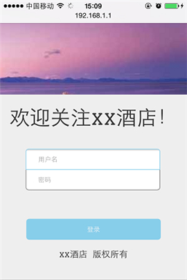 無線終端(手機)連接無線網絡后,跳轉到認證登錄頁面(部分Android手機需要打開瀏覽器),如下: