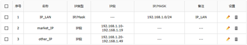 同樣的方法,添加其它部門的IP地址段,添加后列表如下: