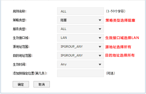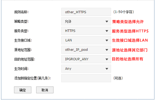 至此,訪問控制設置完成,局域網中所有電腦將擁有所屬的部門對應的上網權限。