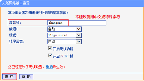 注意:設(shè)置無線名稱后暫不重啟,繼續(xù)設(shè)置。