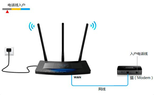 注意:寬帶線一定連接到路由器WAN口,WAN口顏色與LAN口一般不同,電腦連接1/2任意一個端口。
