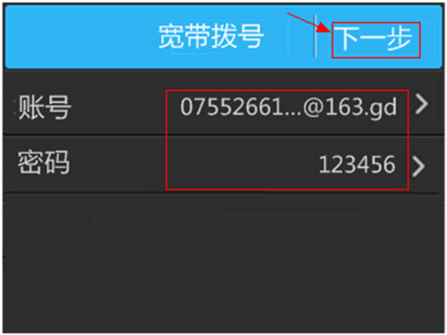 檢查寬帶賬號密碼正確,點擊 下一步。