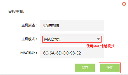 添加經(jīng)理電腦的MAC地址(也可以控制經(jīng)理電腦的IP地址),如下圖: