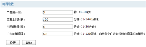 免費上網時間:觀看一次廣告后可以持續的上網時間,超過該時間限制后頁面會再次彈出廣告。