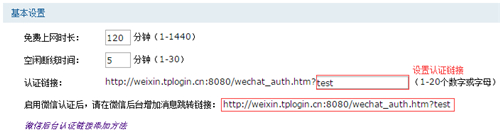 [2] 設置認證跳轉鏈接,該鏈接用于認證上網,在認證鏈接的尾部填寫1-20位的標識,生成的認證跳轉鏈接如下圖: