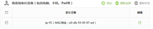 在添加欄中選擇家長電腦,選擇家長電腦的MAC地址,點擊 保存。如下圖:
