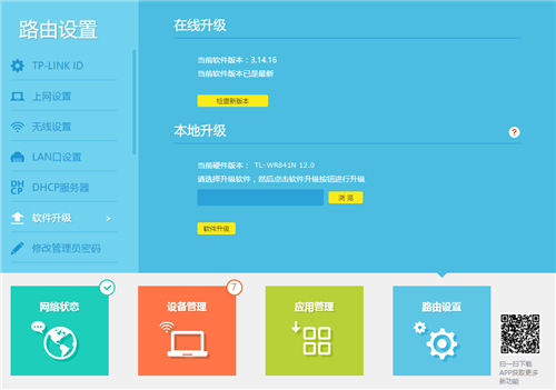 該界面為云路由器的界面,TL-WR841N 12.0及以上的版本均云路由器,該路由器支持在線升級,無需手動下載升級程序,詳細設置方法請點擊參考文檔:云路由器在線升級方法
