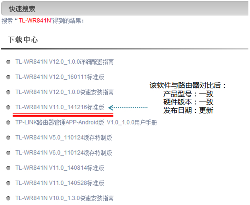 5、在下載文件中找到路由器型號的硬件版本全部吻合的軟件(結尾為標準版的文件),如下圖: