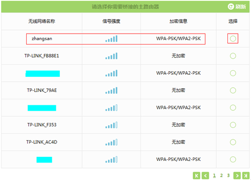 注意:可能不止一頁,可以點擊進入到下一頁。如果無法掃描到主路由器信號,請減小路由器之間的距離或障礙物。