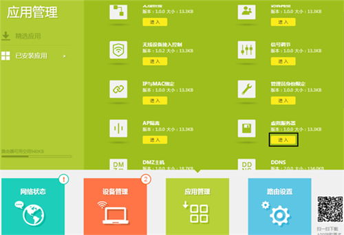 1、在瀏覽器輸入tplogin.cn登錄路由器管理界面,點擊 應用管理,進入 虛擬服務器,如下圖: