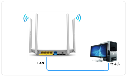 連接方法:將路由器的LAN口(即1~4號接口)與前端路由器的LAN口(或局域網交換機)相連。