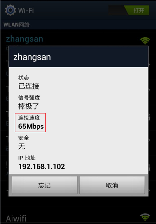 不同無線終端自帶的無線網卡支持的最大無線速率不同。一般情況下,手機等移動終端自帶的無線網卡支持的最大速率較低,如下圖: