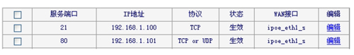 6、在虛擬服務器列表下可以看到剛才設置的2條映射規則,如下圖所示: