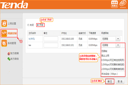 第二步:在跳轉的頁面中點擊 “網速控制”進行網速限制設置,參考如下操作步驟:
