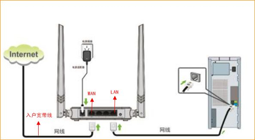 直接將入戶的網線接在路由器的WAN口,再找一根短網線,一頭接電腦,一頭接路由器1/2/3任意接口,接線方式如下圖: