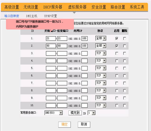 端口號與FTP服務(wù)器端口號一致為21,內(nèi)網(wǎng)IP為服務(wù)器IP