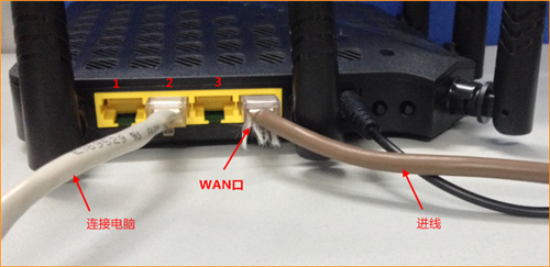 直接將入戶的網線(沒有貓的用戶)或者貓出來的網線(有貓的用戶 )接在路由器的WAN口,再找一根短網線,一頭接電腦,一頭接路由器1/2/3任意接口,接線方式如下圖: