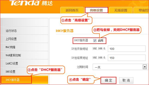 4、關閉第二臺路由器的DHCP服務器。