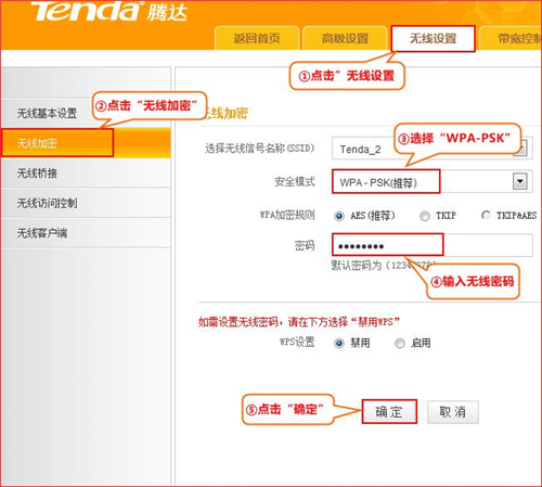 2、點擊“無線設置”—“無線加密”,修改無線密碼,如下圖所示: