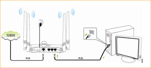 1、直接將入戶的網線接在路由器的WAN口,再找一根短網線,一頭接電腦,一頭接路由器LAN1/LAN2/LAN3任意接口,接線方式如下圖: