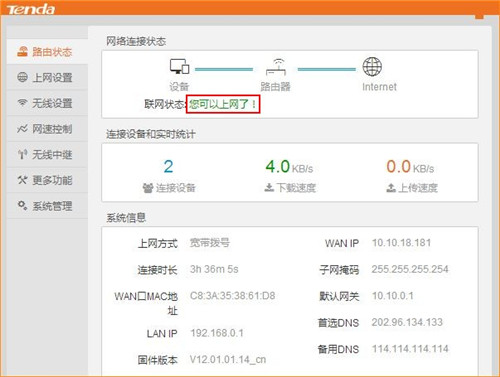4、如果聯(lián)網(wǎng)狀態(tài)顯示“您可以上網(wǎng)了!”,就可以瀏覽網(wǎng)頁,上網(wǎng)沖浪了。