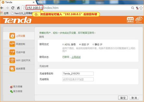 1、在瀏覽器中輸入:192.168.0.1 按回車鍵,登錄到路由器設置界面,如下圖: