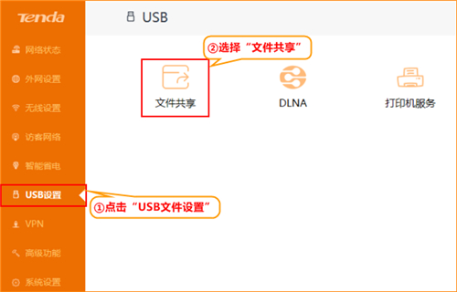① 登錄路由器管理頁面,進入『USB設(shè)置』> 文件共享。查看本地訪問的地址:此處為FTP服務(wù)器”ftp://192.168.0.1:21”;Samba服務(wù)器“//192.168.0.1”。