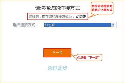 ②動態連接:路由器自動識別上網方式為動態獲取,點擊“下一步”,如下圖: