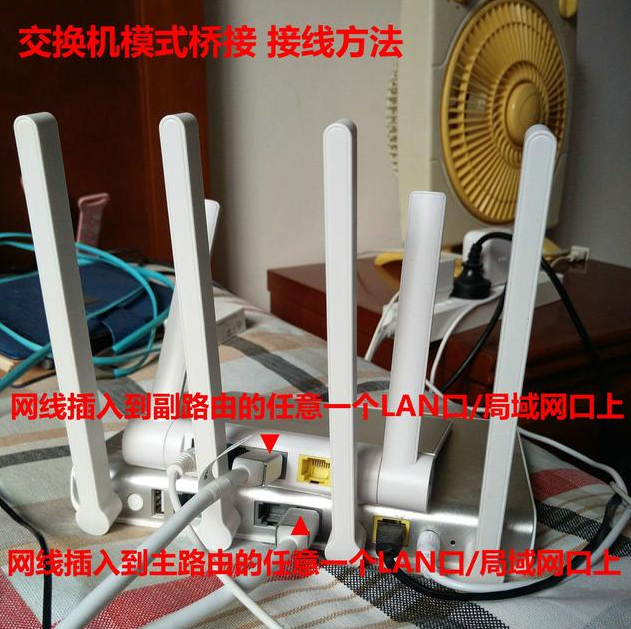 也是兩步搞定哦,總結就是:副路由的IP改成主路由的網段內、關閉DHCP開關、連接網線LAN—LAN。